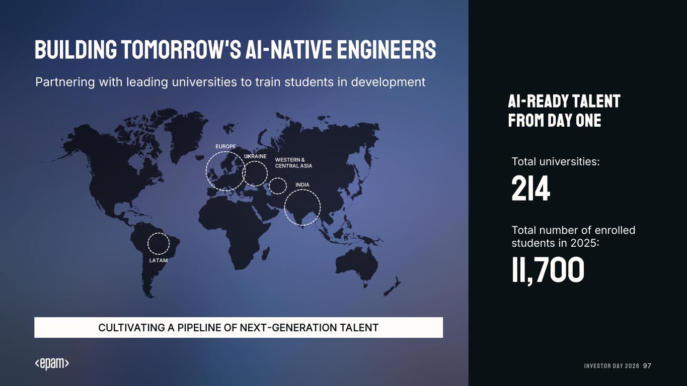 BUILDING TOMORROW'S AI-NATIVE ENGINEERS AI-Ready Talent from Day One Total universities: 214 Total number of enrolled students in 2025: 11,700 97 Partnering with leading universities to train students in development CULTIVATING A PIPELINE OF NEXT-GENERATION TALENT EUROPE UKRAINE WESTERN & CENTRAL ASIA INDIA LATAM
