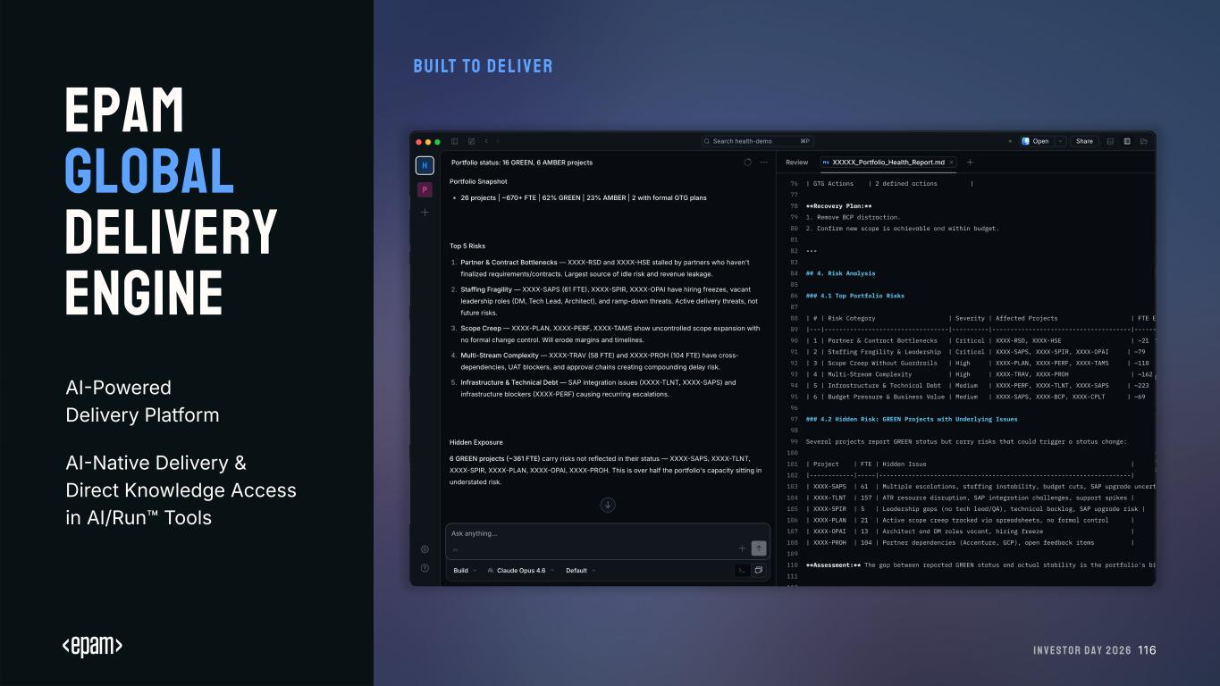 EPAM Global Delivery ENGINE 115 B U I LT T O D E L I V E R AI-Powered Delivery Platform
