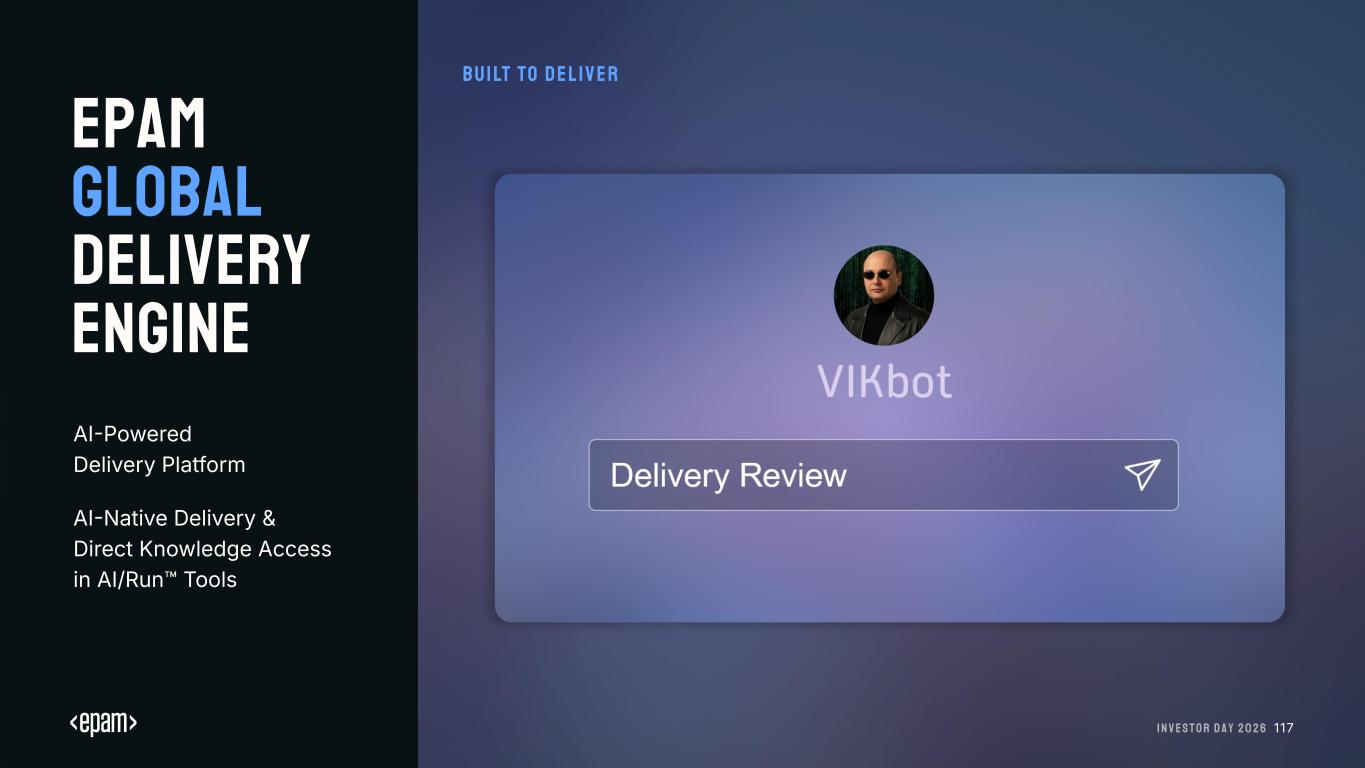 EPAM Global Delivery ENGINE 116 AI-Powered Delivery Platform AI-Native Delivery & Direct Knowledge Access in AI/Run Tools B U I LT T O D E L I V E R
