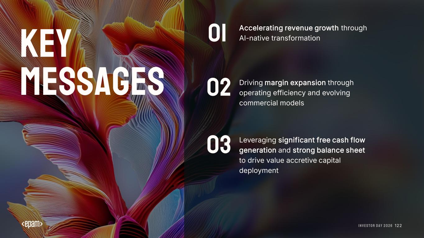 Key messages Accelerating revenue growth through AI-native transformation01 02 Driving margin expansion through operating efficiency and evolving commercial models 03 Leveraging significant free cash flow generation and strong balance sheet to drive value accretive capital deployment 122