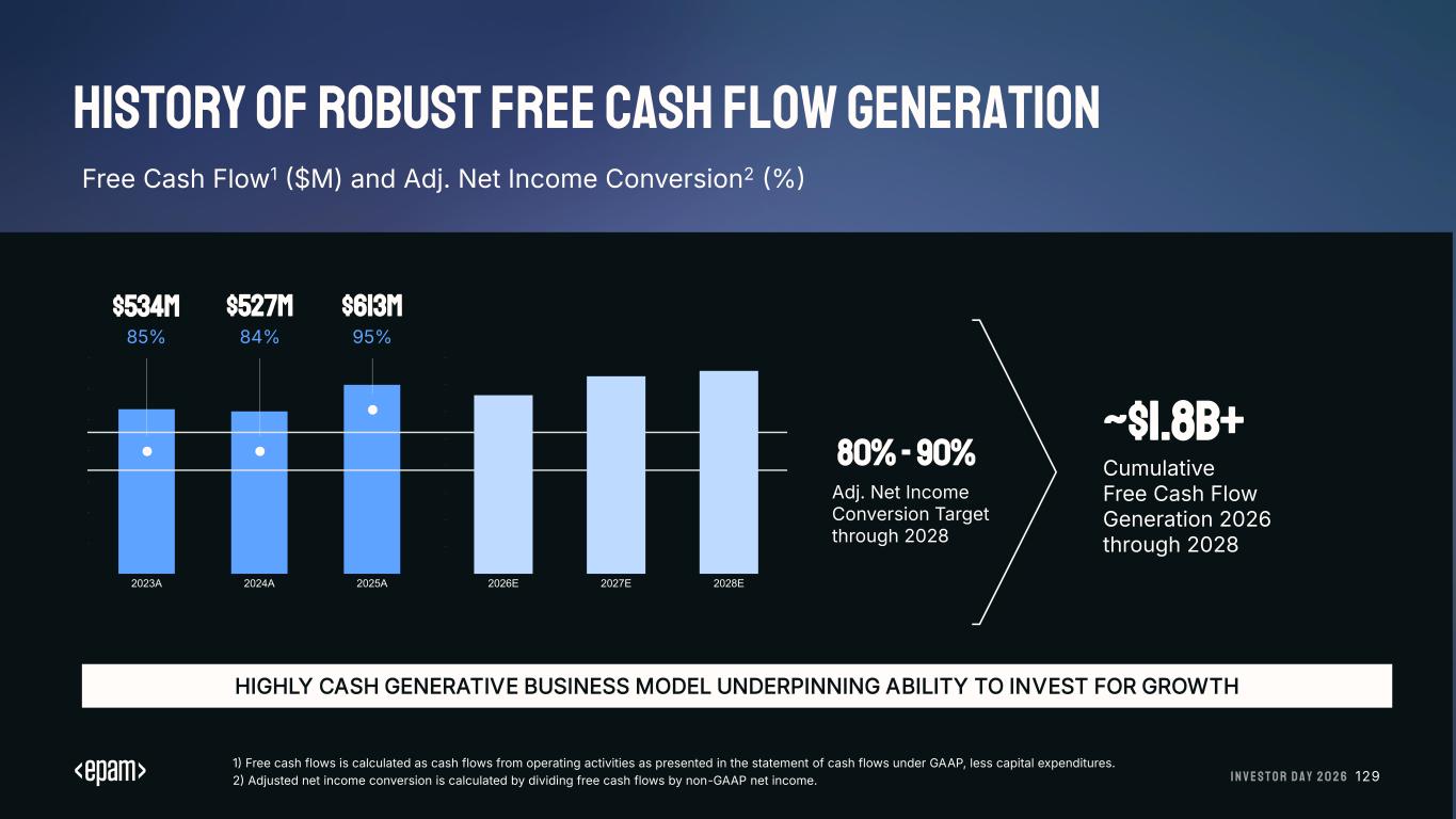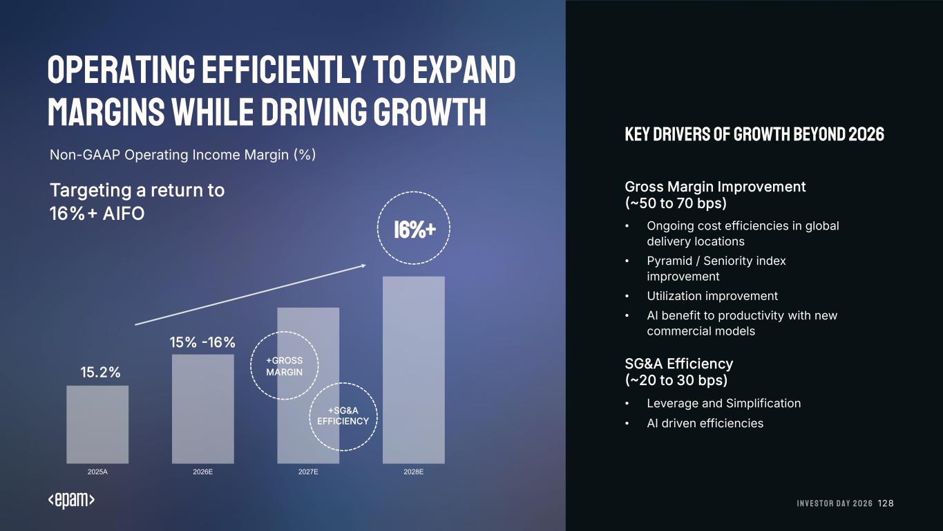 2025A 2026E 2027E 2028E Key Drivers Of Growth Beyond 2026 Gross Margin Improvement (~50 to 70 bps) • Ongoing cost efficiencies in global delivery locations • Pyramid / Seniority index improvement • Utilization improvement • AI benefit to productivity with new commercial models SG&A Efficiency (~20 to 30 bps) • Leverage and Simplification • AI driven efficiencies 15.2% Operating Efficiently to Expand Margins while Driving Growth Targeting a return to 16%+ AIFO 15% -16% Non-GAAP Operating Income Margin (%) +GROSS MARGIN +SG&A EFFICIENCY 16%+ 128