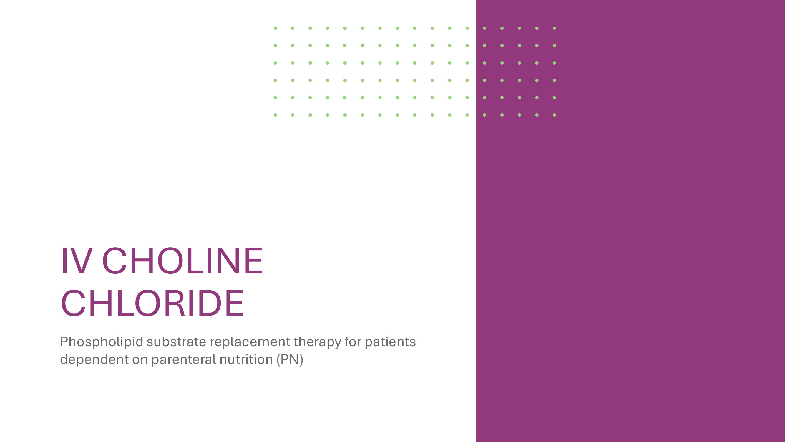 IV CHOLINE CHLORIDE Phospholipid substrate replacement therapy for patients dependent on parenteral nutrition (PN)