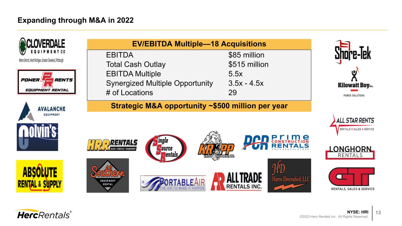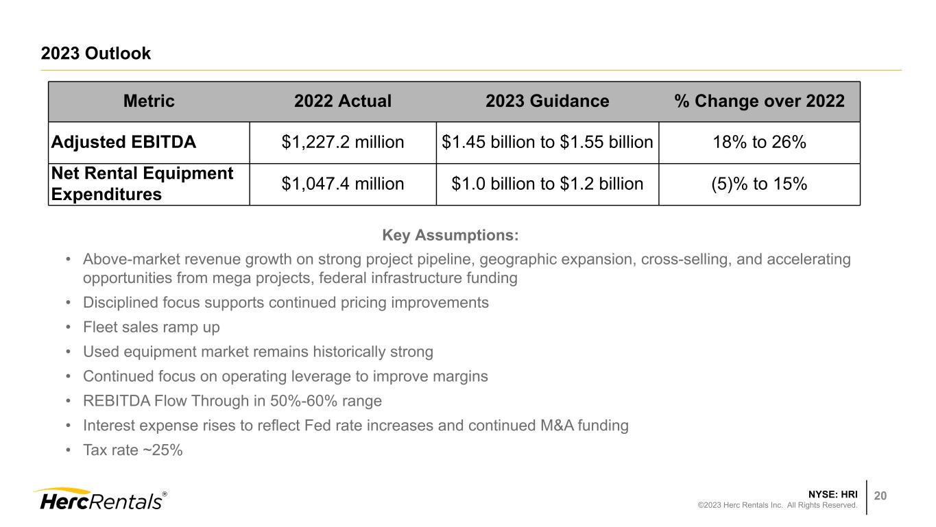 NYSE: HRI ©2023 Herc Rentals Inc. All Rights Reserved. 22