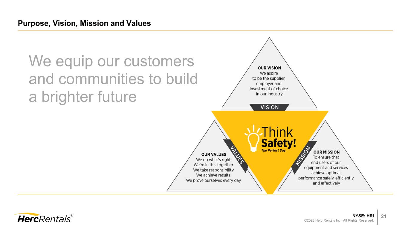 NYSE: HRI ©2023 Herc Rentals Inc. All Rights Reserved. 21 Purpose, Vision, Mission and Values We equip our customers and communities to build a brighter future