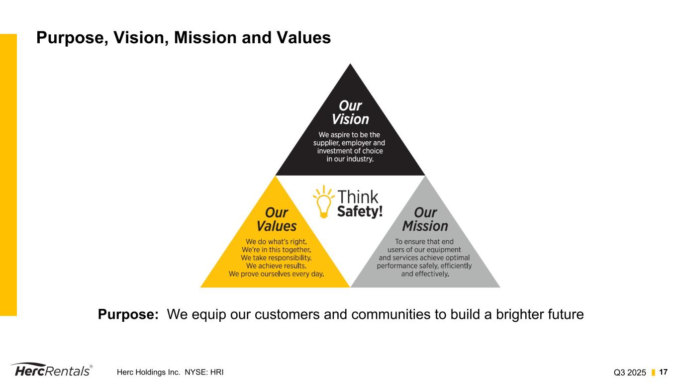 Q3 2025Herc Holdings Inc. NYSE: HRI 17 Purpose, Vision, Mission and Values Purpose: We equip our customers and communities to build a brighter future