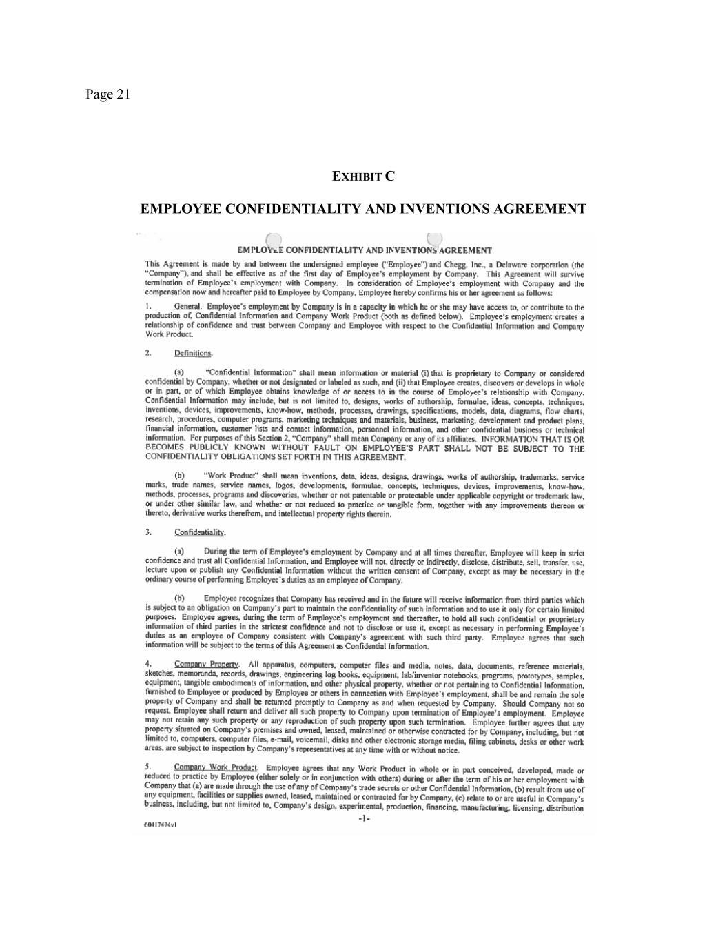 Page 21 EXHIBIT C EMPLOYEE CONFIDENTIALITY AND INVENTIONS AGREEMENT