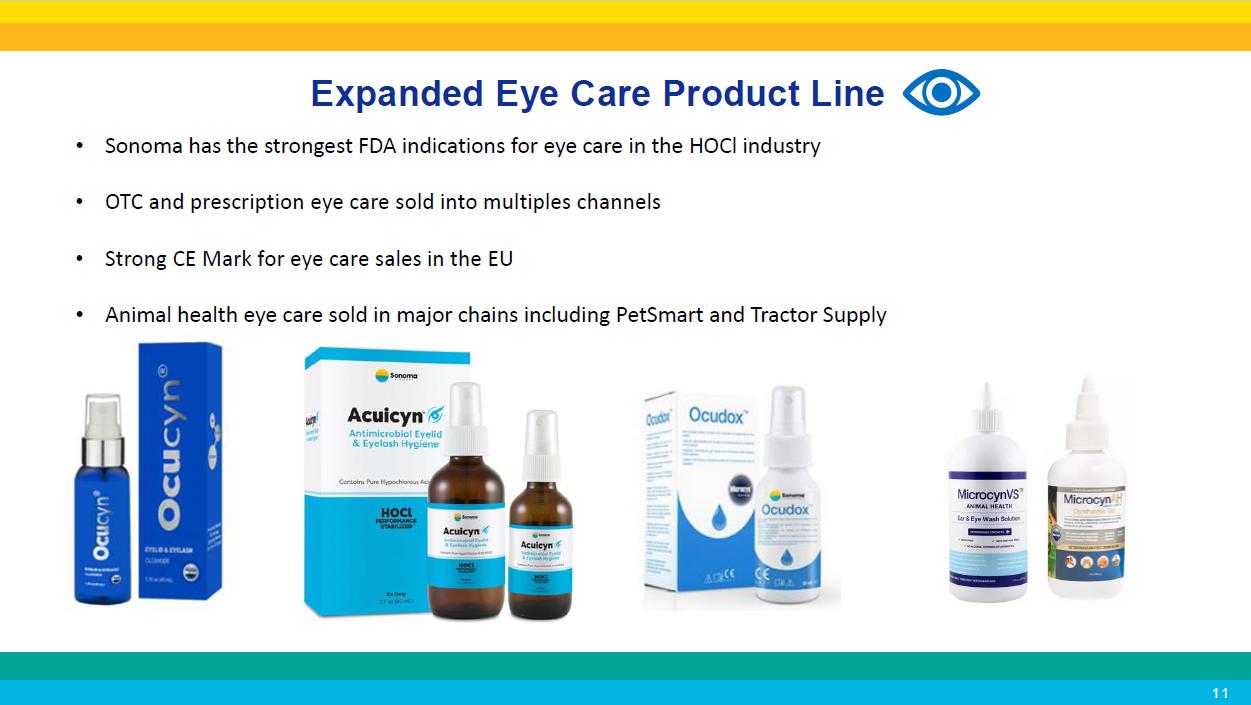 Expanded Eye Care Product Line • Sonoma has the strongest FDA indications for eye care in the HOCl industry • OTC and prescription eye care sold into multiples channels • Strong CE Mark for eye care sales in the EU • Animal health eye care sold in major chains including PetSmart and Tractor Supply 11