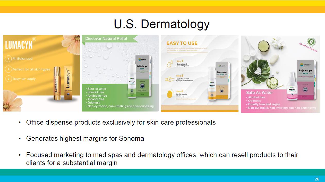 U.S. Dermatology • Office dispense products exclusively for skin care professionals • Generates highest margins for Sonoma • Focused marketing to med spas and dermatology offices, which can resell products to their clients for a substantial margin 26