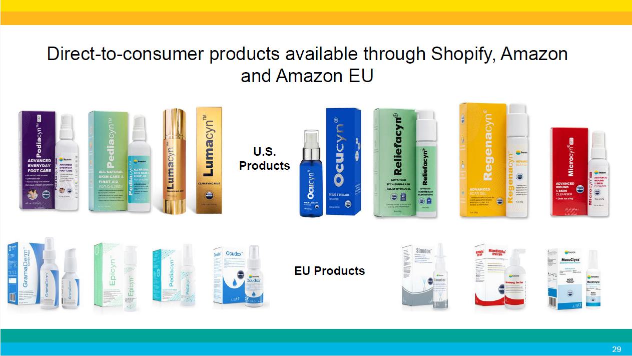 Direct - to - consumer products available through Shopify, Amazon and Amazon EU U.S. Products EU Products 29