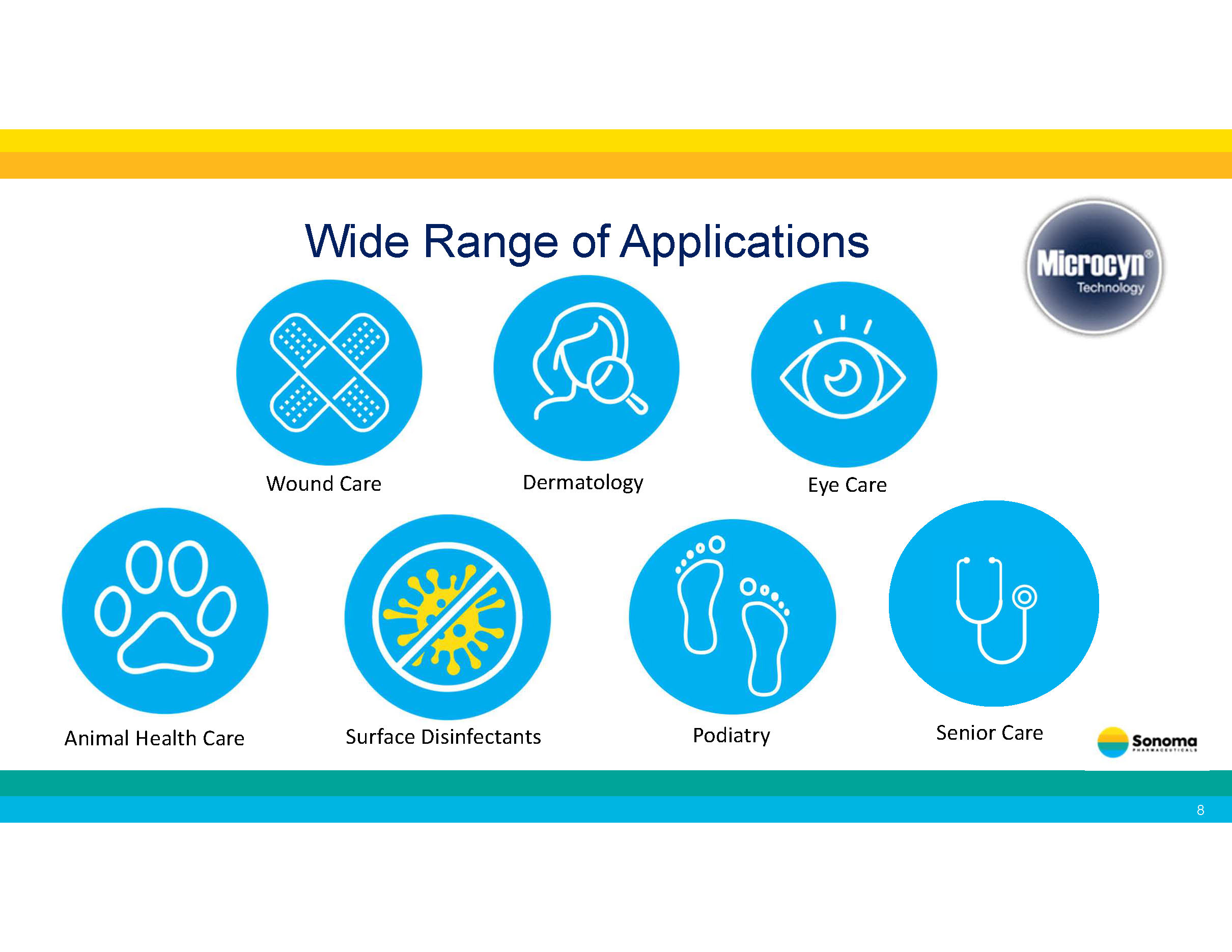 Wide Range of Applications Wound Care Dermatology Eye Care Animal Health Care Surface Disinfectants Podiatry 8 Senior Care