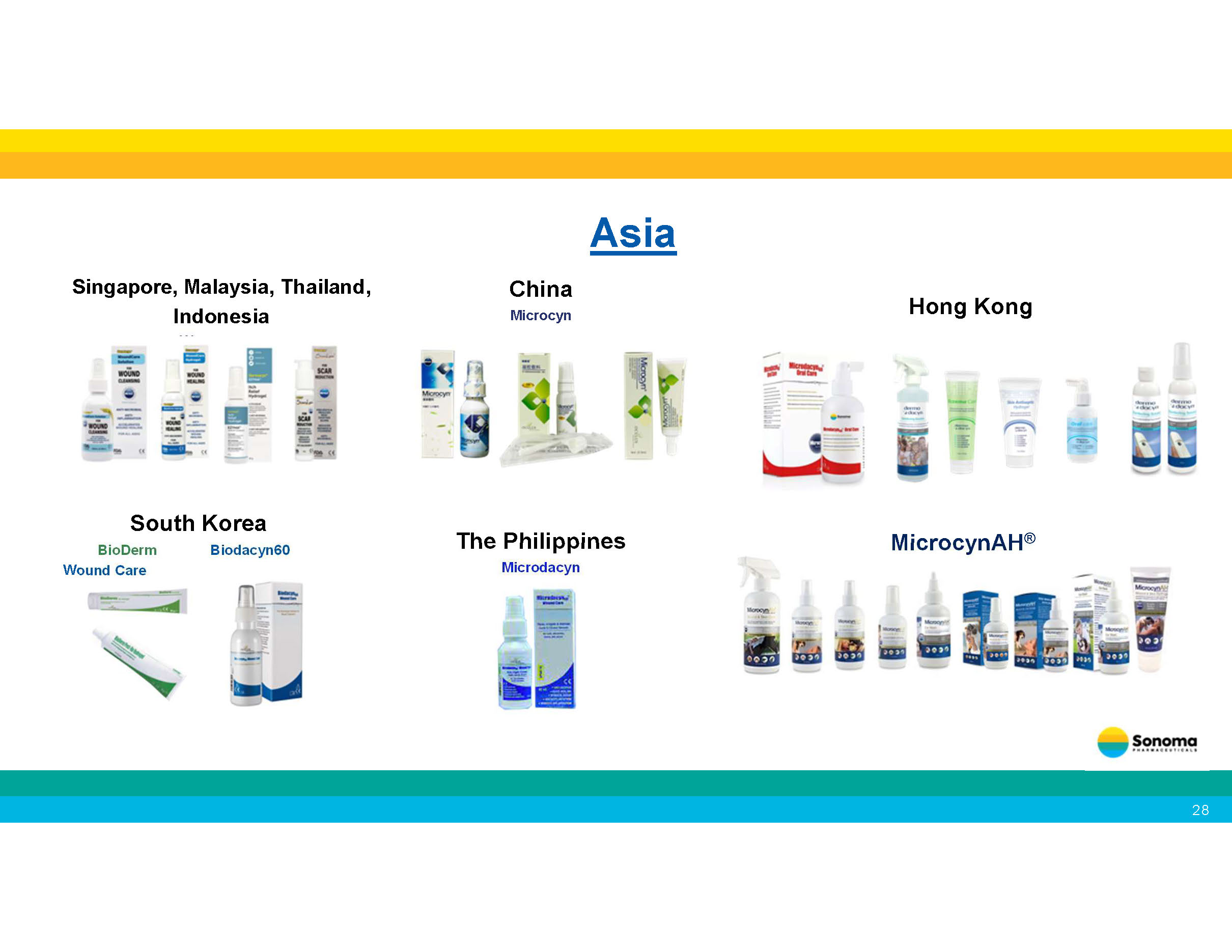 Singapore, Malaysia, Thailand, Indonesia Wound Care South Korea BioDerm Biodacyn60 Wound Care Hong Kong China Microcyn The Philippines Microdacyn MicrocynAH ® Asia 28