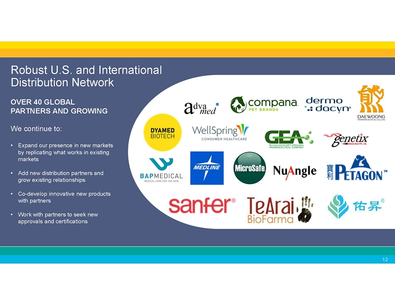 Robust U.S. and International Distribution Network OVER 40 GLOBAL PARTNERS AND GROWING We continue to: • Expand our presence in new markets by replicating what works in existing markets • Add new distribution partners and grow existing relationships • Co - develop innovative new products with partners • Work with partners to seek new approvals and certifications
