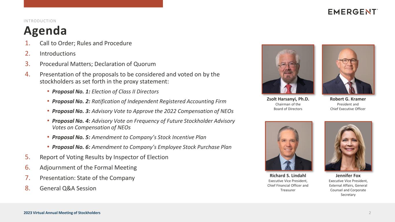Emergent BioSolutions Inc. 2023 Annual Meeting of Stockholders May 25, 2023