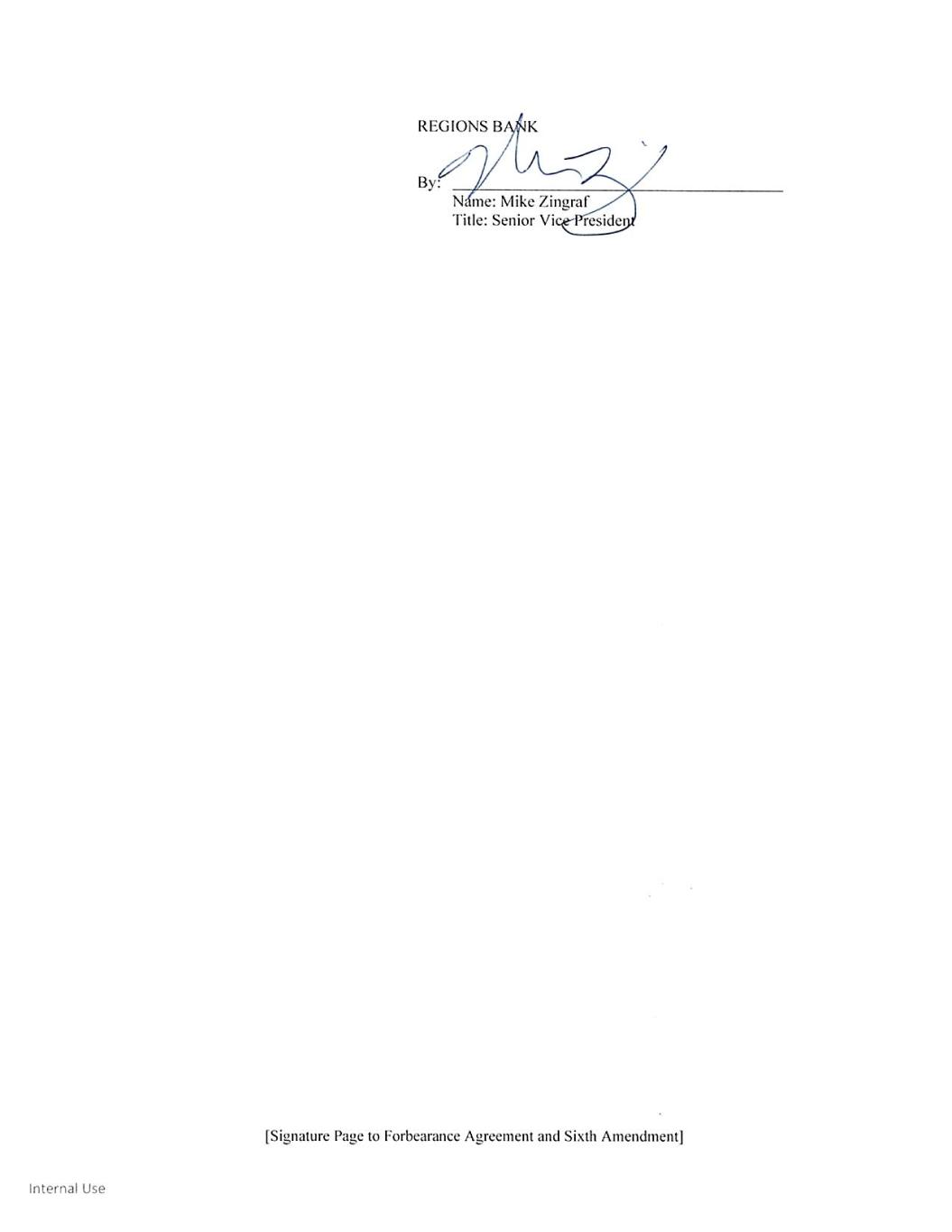 [Signature Page to Forbearance Agreement and Sixth Amendment] VÄRDE INVESTMENT PARTNERS, L.P. By Värde Investment Partners G.P., L.P., Its General Partner By Värde Investment Partners UGP, LLC, Its General Partner By Värde Partners, L.P., Its Managing Member By Värde Partners, Inc., Its General Partner By: Name: Matthew Mach Title: Managing Director