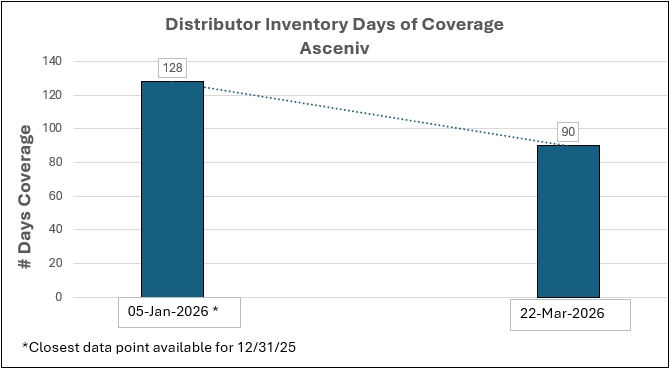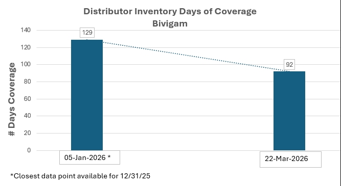 As shown through data provided directly from ADMA’s distribution partners and direct customers, the graphs entitled “Distributor Inventory Days of Coverage Above Safety Stock” illustrates, as of January 5, 2026 and March 22, 2026, an average of 84 and 48 days on hand, respectively, for ASCENIV, and an average of 87 and 51 days on hand, respectively, for BIVIGAM, in excess of the distributors’ minimum requirements.  These data are calculated using each distributor’s run rate for the previous month, demonstrating that ADMA’s immune globulin products are continuing to pull through the channel.  Note: Due to year end calendar and fixed reporting schedules, January 5, 2026 is the closest available data for December 31, 2025.