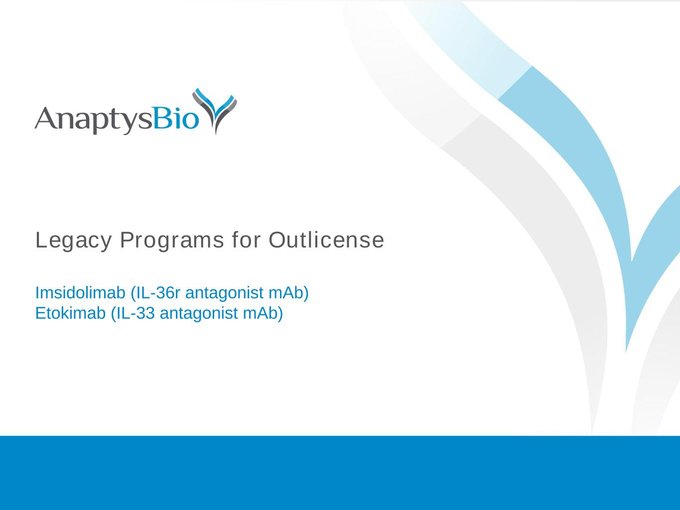 Legacy Programs for Outlicense Imsidolimab (IL-36r antagonist mAb) Etokimab (IL-33 antagonist mAb)