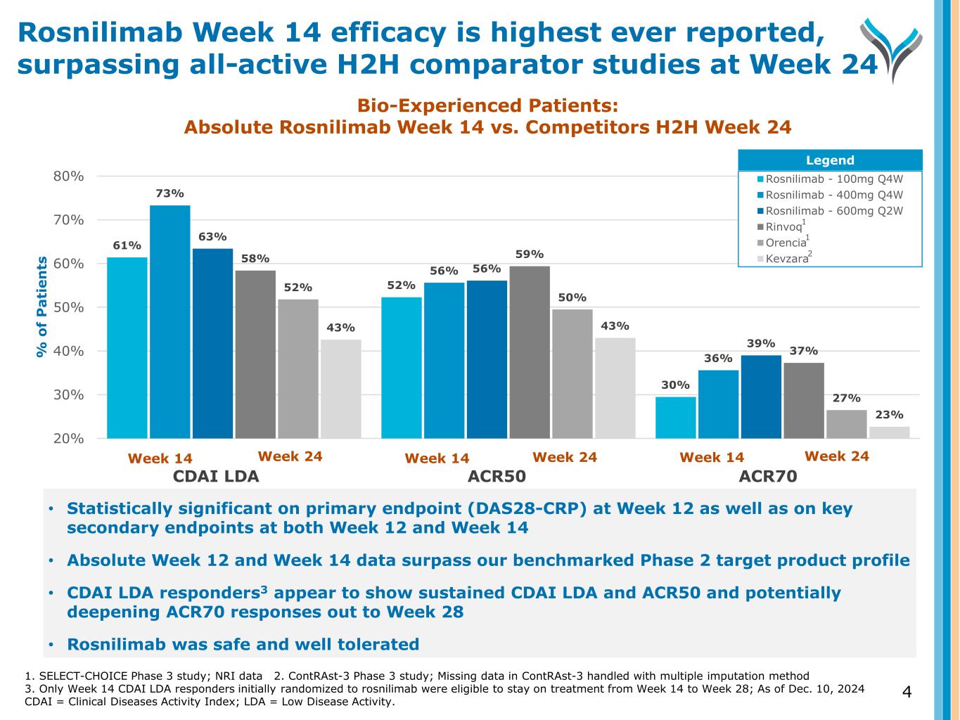 Feb. 12, 2025 Rosnilimab: Phase 2b Top-line Data in RA