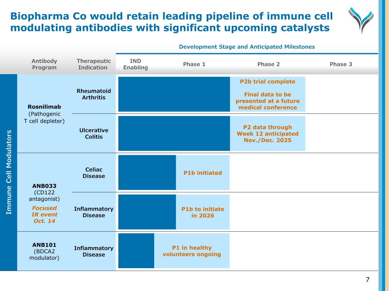 Antibody Program Therapeutic Indication Development Stage and Anticipated Milestones IND Enabling Phase 1 Phase 2 Phase 3 Rosnilimab (Pathogenic T cell depleter) Rheumatoid Arthritis Ulcerative Colitis ANB033 (CD122 antagonist) Celiac Disease Inflammatory Disease ANB101 (BDCA2 modulator) Inflammatory Disease 7 P2b trial complete Final data to be presented at a future medical conference P2 data through Week 12 anticipated Nov./Dec. 2025 P1b initiated Im m u n e C el l M od u la to rs P1 in healthy volunteers ongoing P1b to initiate in 2026 Focused IR event Oct. 14 Biopharma Co would retain leading pipeline of immune cell modulating antibodies with significant upcoming catalysts
