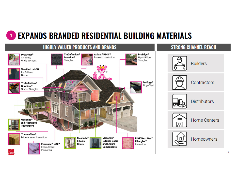 Builders Contractors Distributors Home Centers Homeowners 8 HIGHLY VALUED PRODUCTS AND BRANDS STRONG CHANNEL REACH EXPANDS BRANDED RESIDENTIAL BUILDING MATERIALS 1