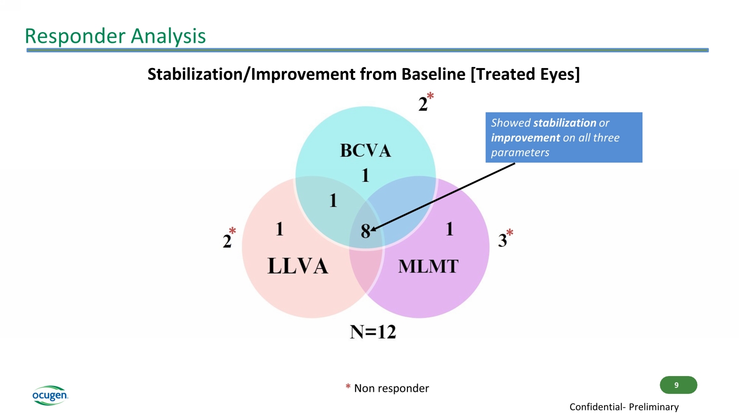 Responder Analysis Stabilization/Improvement from Baseline [Treated Eyes] * * * * Non responder 9 Confidential - Preliminary Showed stabilization or improvement on all three parameters