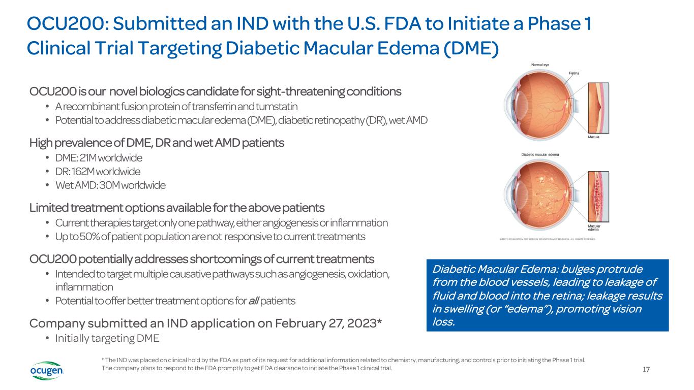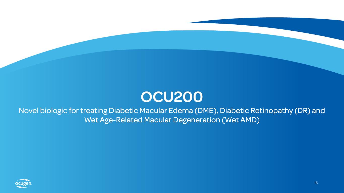 16 OCU200 Novel biologic for treating Diabetic Macular Edema (DME), Diabetic Retinopathy (DR) and Wet Age-Related Macular Degeneration (Wet AMD)