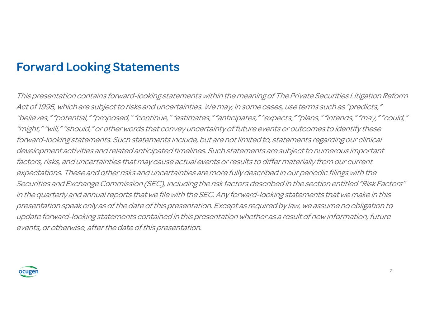 Courageous Innovation Dedicated to Bringing Game-Changing Gene & Cell Therapies and Vaccines to Market and Working Even Harder to Provide Access to Patients Globally November 2023 NASDAQ: OCGN