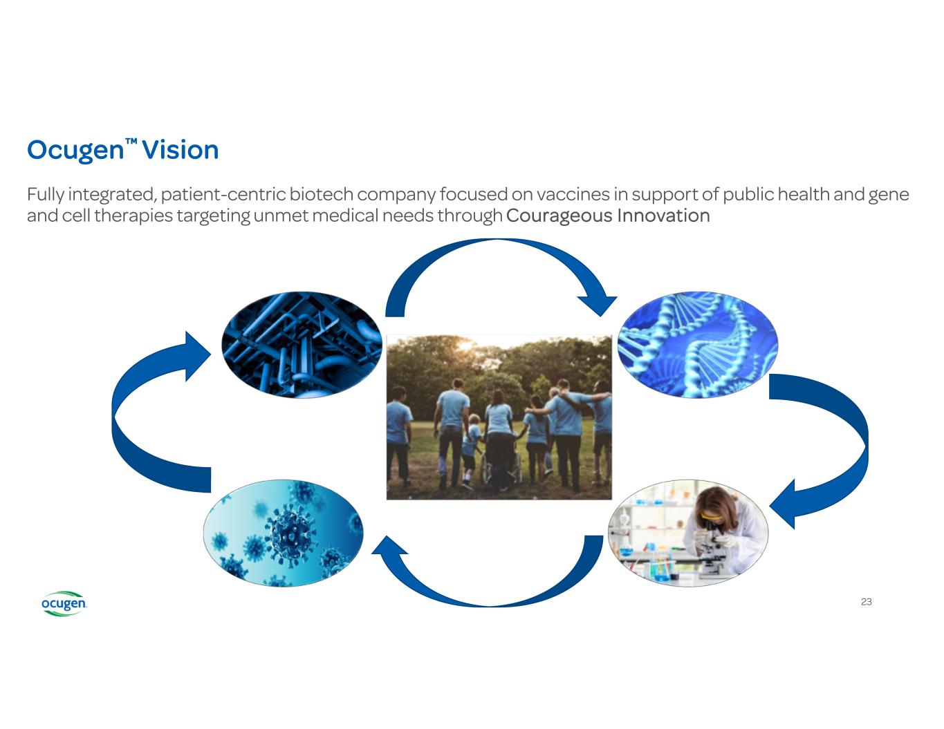 23 Ocugen™ Vision Fully integrated, patient-centric biotech company focused on vaccines in support of public health and gene and cell therapies targeting unmet medical needs through Courageous Innovation