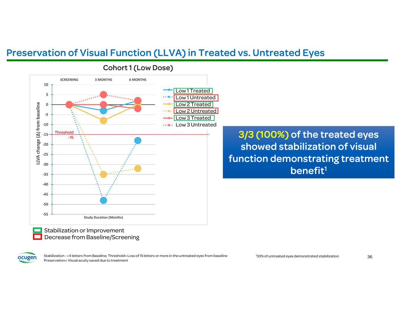 -55 -50 -45 -40 -35 -30 -25 -20 -15 -10 -5 0 5 10 SCREENING 3 MONTHS 6 MONTHS LL VA c ha ng e (∆ )f ro m b as el in e Study Duration (Months) 006-001 Treated 006-001 Untreated 007-001 Treated 007-001 Untreated 006-004 Treated 006-004 Untreated ±