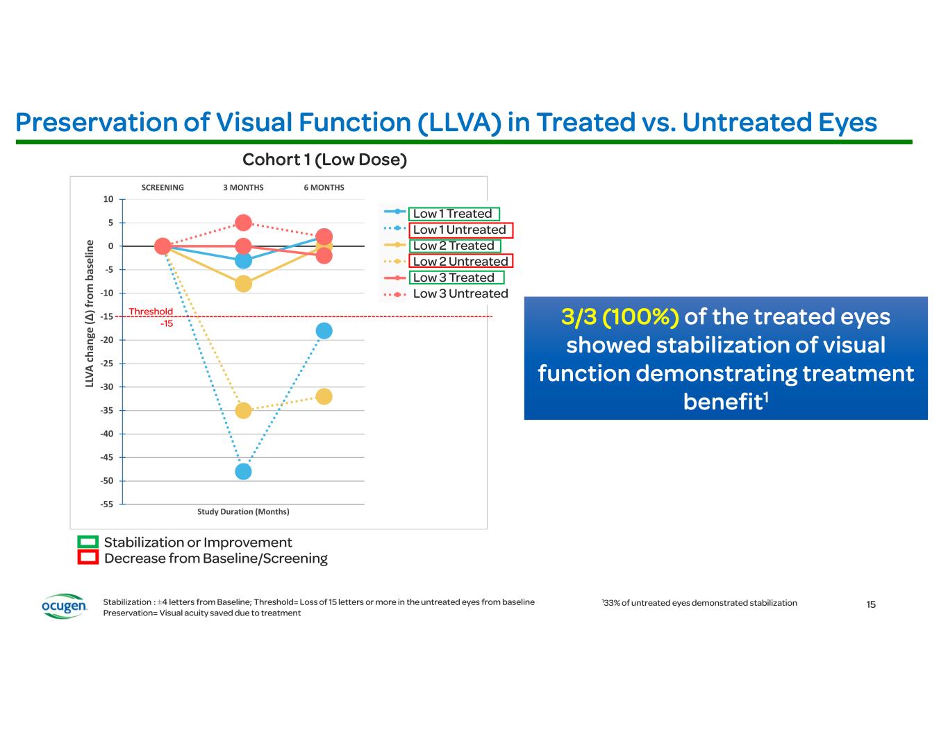 -55 -50 -45 -40 -35 -30 -25 -20 -15 -10 -5 0 5 10 SCREENING 3 MONTHS 6 MONTHS LL VA c ha ng e (∆ )f ro m b as el in e Study Duration (Months) 006-001 Treated 006-001 Untreated 007-001 Treated 007-001 Untreated 006-004 Treated 006-004 Untreated ±