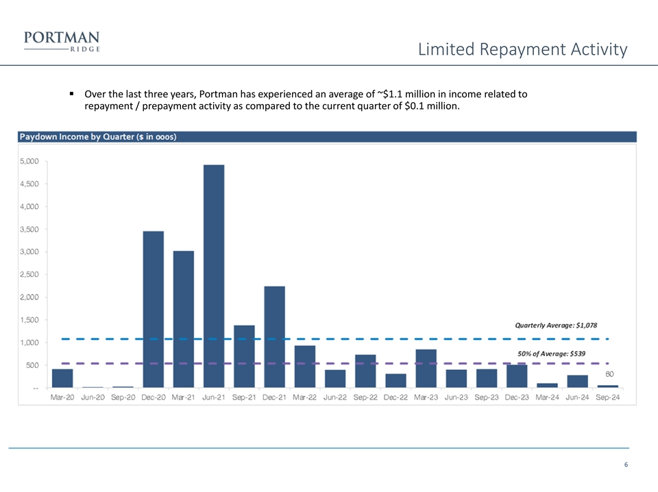 Limited Repayment Activity § Over the last three years, Portman has experienced an average of ~$1.1 million in income related to repayment / prepayment activity as compared to the current quarter of $0.1 million. 6