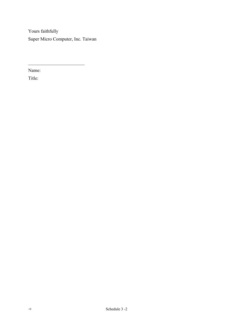 -/0 Schedule 3 -2 Yours faithfully Super Micro Computer, Inc. Taiwan ________________________ Name: Title: