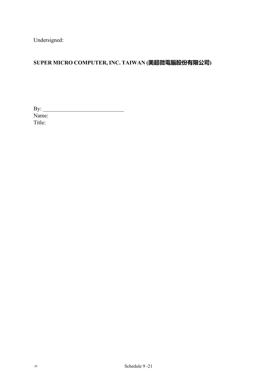 -/0 Schedule 9 -21 Undersigned: SUPER MICRO COMPUTER, INC. TAIWAN (美超微電腦股份有限公司) By: _____________________________ Name: Title: