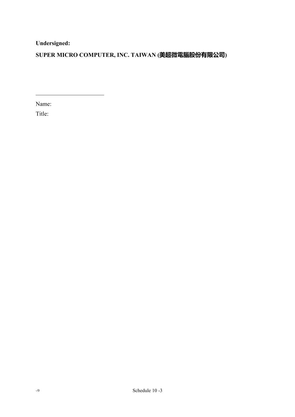 -/0 Schedule 10 -3 Undersigned: SUPER MICRO COMPUTER, INC. TAIWAN (美超微電腦股份有限公司) _______________________ Name: Title: