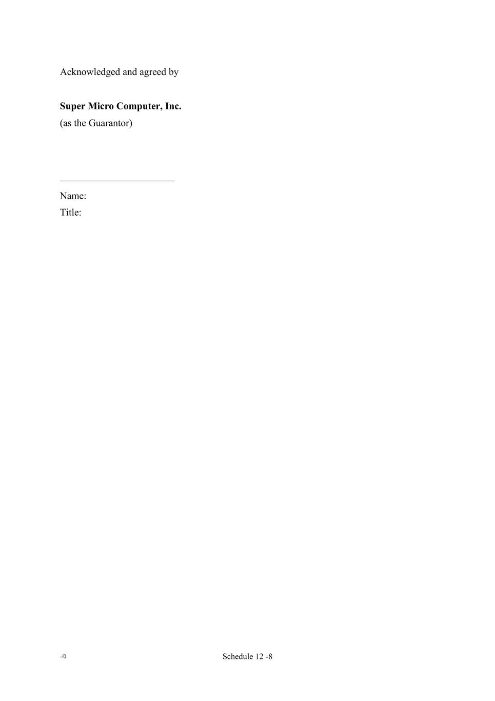 -/0 Schedule 12 -8 Acknowledged and agreed by Super Micro Computer, Inc. (as the Guarantor) _______________________ Name: Title:
