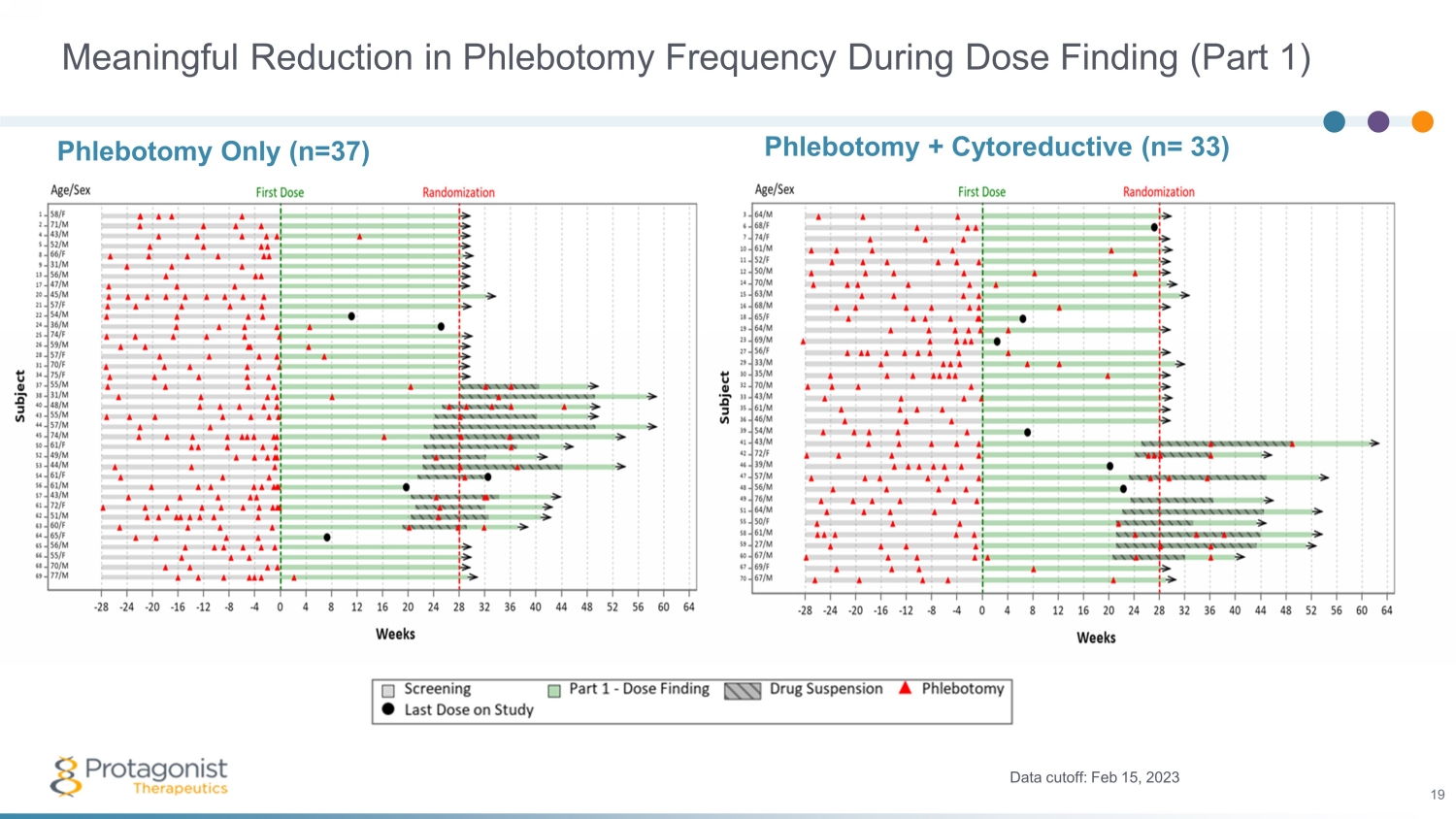 Meaningful Reduction in Phlebotomy Frequency During Dose Finding (Part 1) Phlebotomy + Cytoreductive (n= 33) Data cutoff: Feb 15, 2023 19 Phlebotomy Only (n=37)
