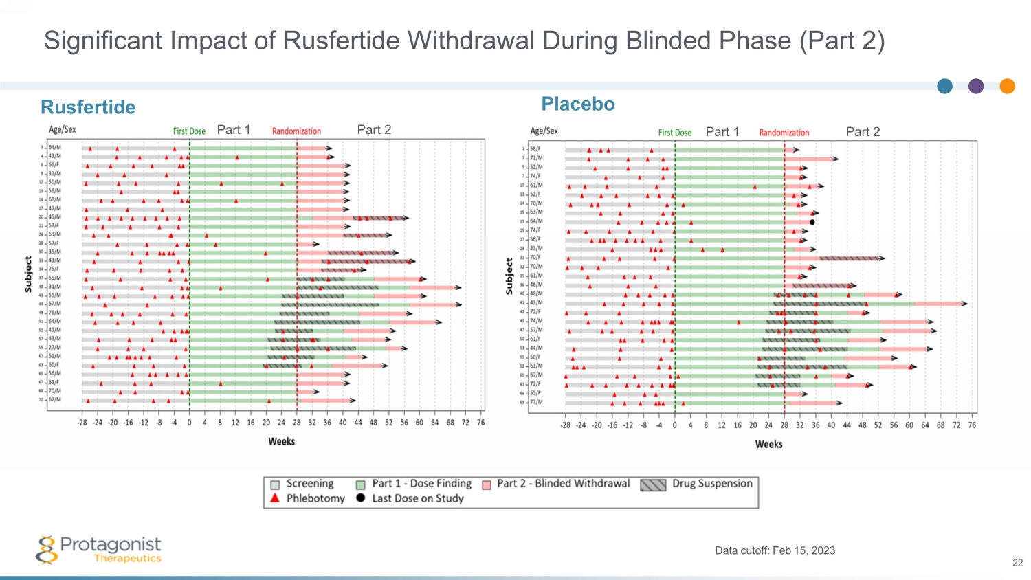 Significant Impact of Rusfertide Withdrawal During Blinded Phase (Part 2) Placebo Data cutoff: Feb 15, 2023 22 Rusfertide Part 1 Part 2 Part 1 Part 2
