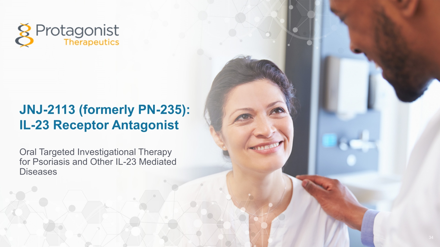 JNJ - 2113 (formerly PN - 235): IL - 23 Receptor Antagonist Oral Targeted Investigational Therapy for Psoriasis and Other IL - 23 Mediated Diseases 34