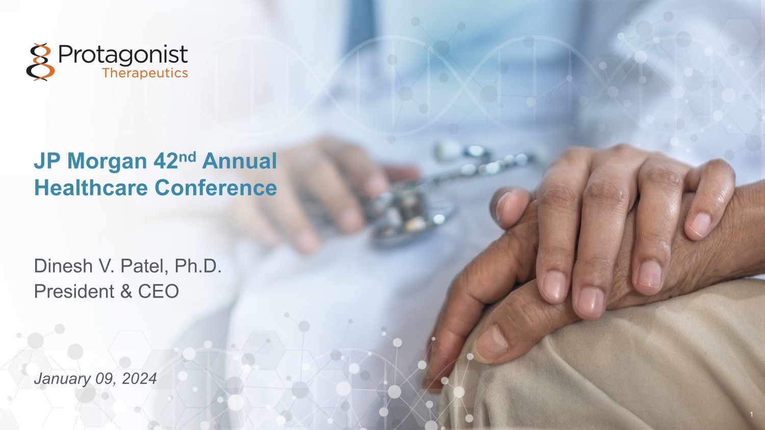 1 JP Morgan 42 nd Annual Healthcare Conference Dinesh V. Patel, Ph.D. President & CEO January 09, 2024