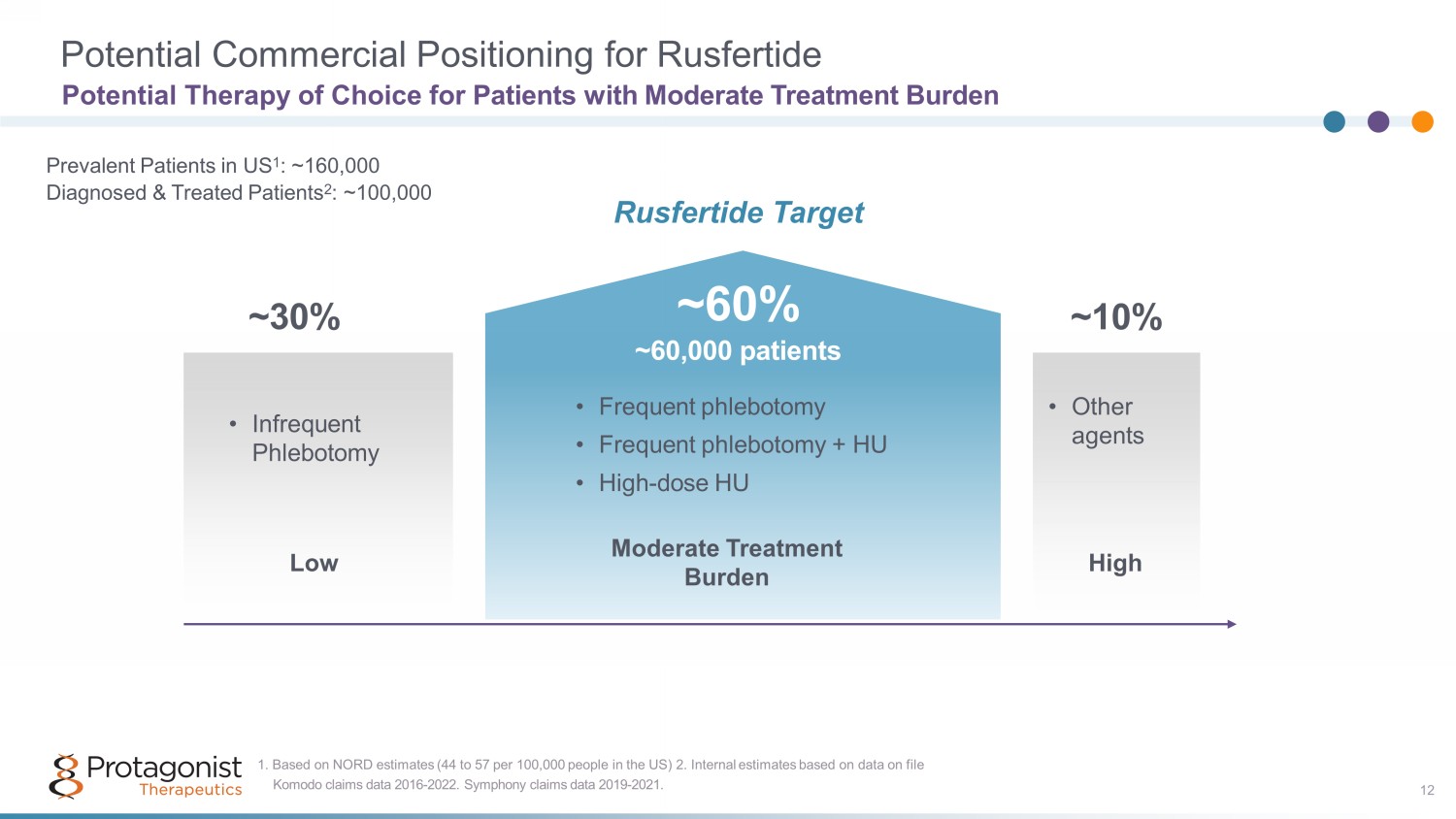 Potential Commercial Positioning for Rusfertide Potential Therapy of Choice for Patients with Moderate Treatment Burden 12 Prevalent Patients in US 1 : ~160,000 Diagnosed & Treated Patients 2 : ~100,000 ~30% ~60% ~60,000 patients ~10% Low Moderate Treatment Burden High Komodo claims data 2016 - 2022. Symphony claims data 2019 - 2021. 1. Based on NORD estimates (44 to 57 per 100,000 people in the US) 2. Internal estimates based on data on file • Infrequent Phlebotomy • Frequent phlebotomy • Frequent phlebotomy + HU • High - dose HU • Other agents Rusfertide Target