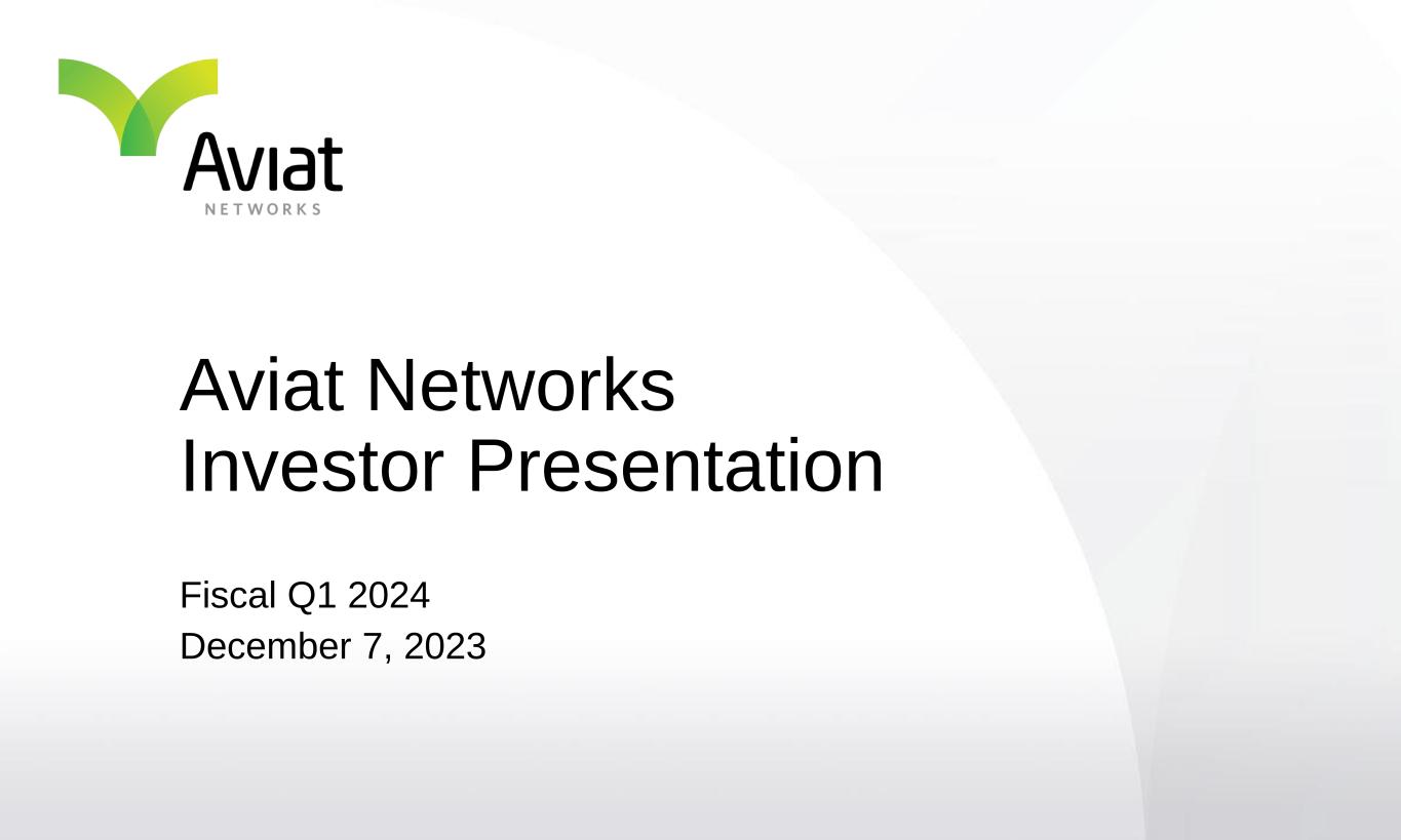 Aviat Networks Investor Presentation Fiscal Q1 2024 December 7, 2023