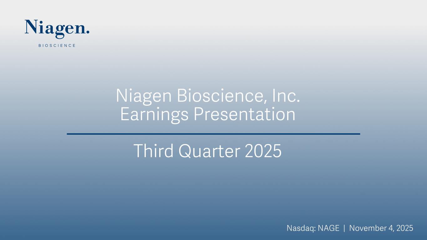 Niagen Bioscience, Inc. Earnings Presentation Third Quarter 2025 Nasdaq: NAGE | November 4, 2025