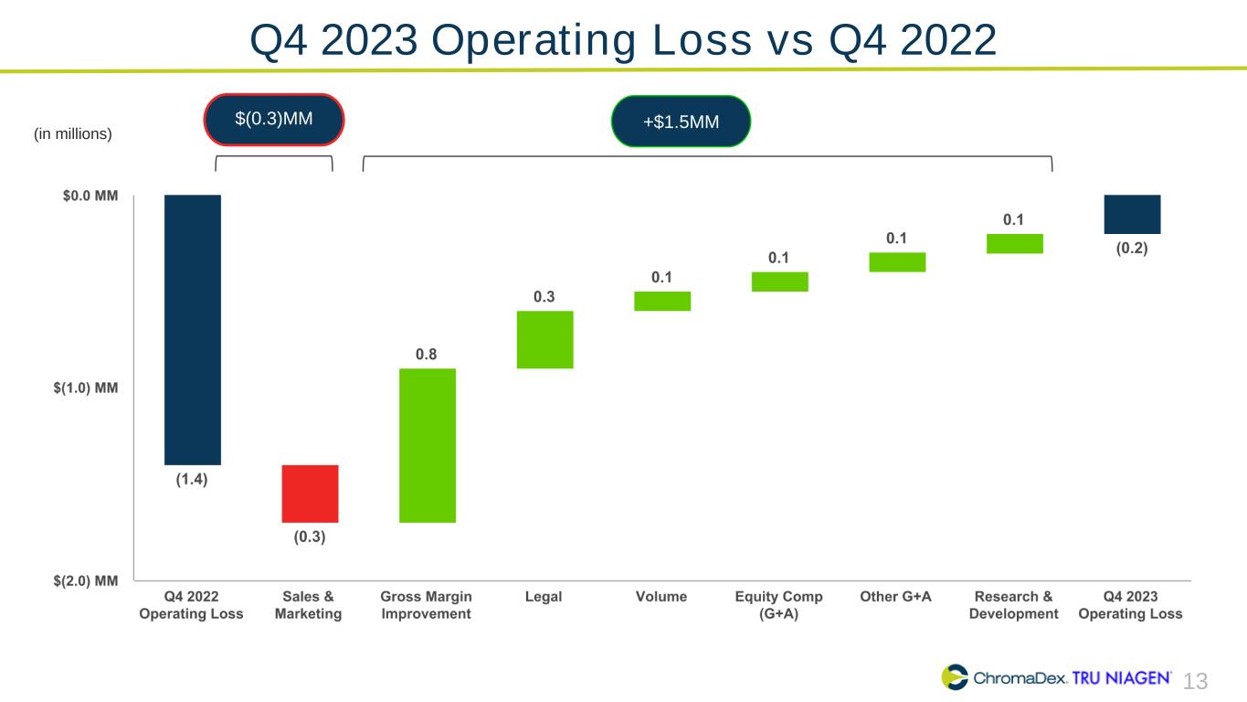 13 Q4 2023 Operating Loss vs Q4 2022 (in millions) +$1.5MM$(0.3)MM