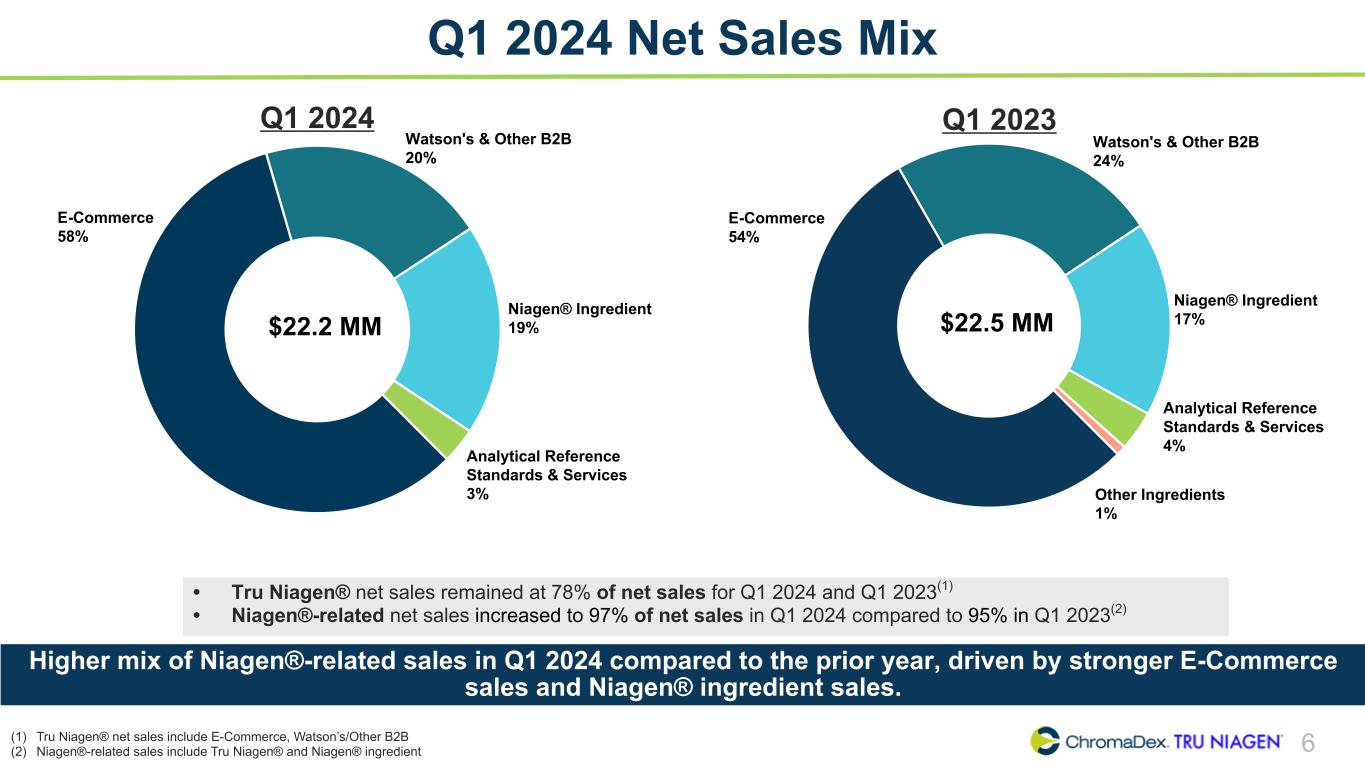 ChromaDex Earnings Conference Call First Quarter 2024 Rob Fried Chief Executive Officer Brianna Gerber Chief Financial Officer Andrew Shao SVP Scientific & Regulatory Affairs Nasdaq: CDXC | May 8, 2024