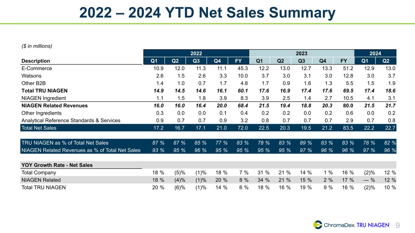 ChromaDex Earnings Presentation Second Quarter 2024 Rob Fried Chief Executive Officer James Lee Interim Chief Financial Officer Andrew Shao SVP Scientific & Regulatory Affairs Nasdaq: CDXC | August 7, 2024
