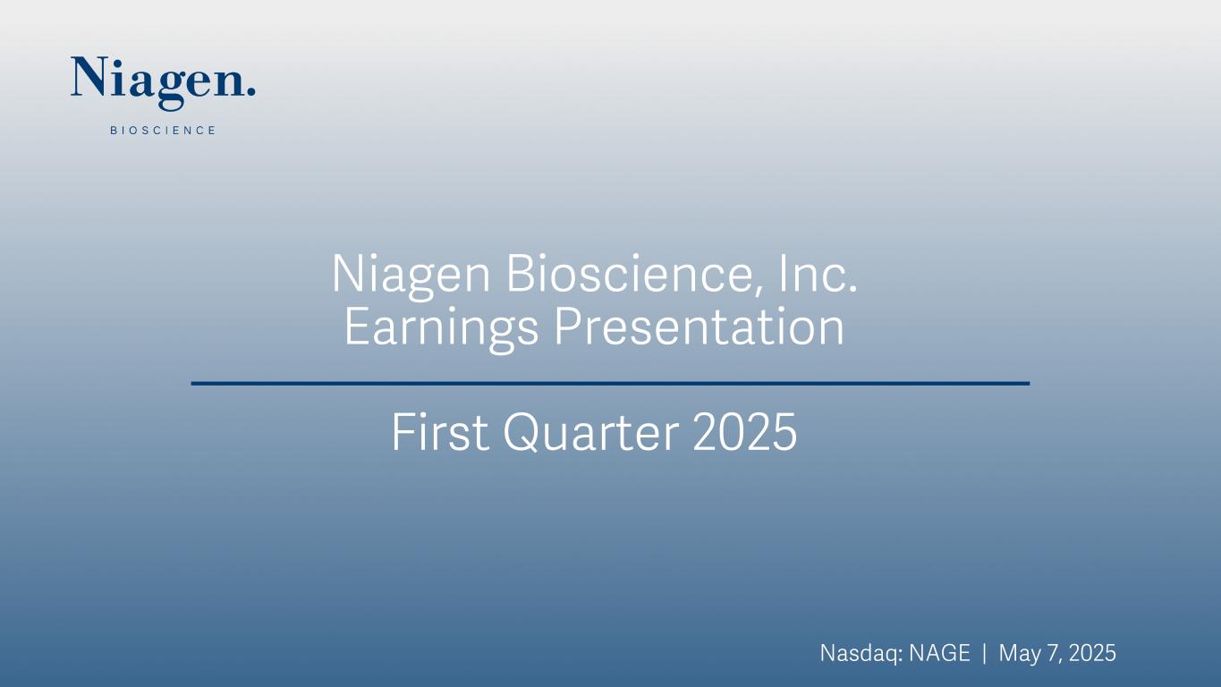 Niagen Bioscience, Inc. Earnings Presentation First Quarter 2025 Nasdaq: NAGE | May 7, 2025