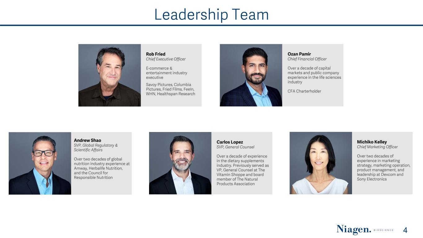 Leadership Team Rob Fried Chief Executive Officer E-commerce & entertainment industry executive Savoy Pictures, Columbia Pictures, Fried Films, FeeIn, WHN, Healthspan Research Andrew Shao SVP, Global Regulatory & Scientific Affairs Over two decades of global nutrition industry experience at Amway, Herbalife Nutrition, and the Council for Responsible Nutrition Ozan Pamir Chief Financial Officer Over a decade of capital markets and public company experience in the life sciences industry CFA Charterholder Carlos Lopez SVP, General Counsel Over a decade of experience in the dietary supplements industry. Previously served as VP, General Counsel at The Vitamin Shoppe and board member of The Natural Products Association Michiko Kelley Chief Marketing Officer Over two decades of experience in marketing strategy, marketing operation, product management, and leadership at Dexcom and Sony Electronics 4