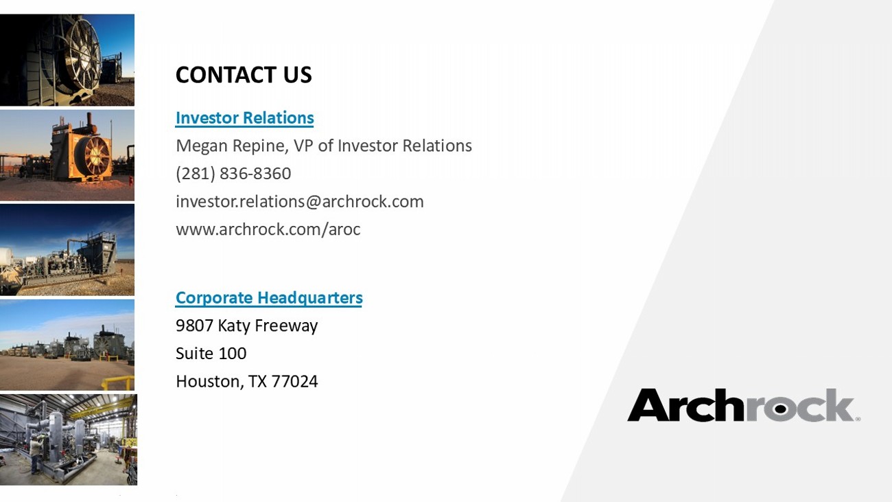 ARCHROCK, INC. (NYSE:AROC) CONTACT US Investor Relations Megan Repine, VP of Investor Relations (281) 836 - 8360 investor.relations@archrock.com www.archrock.com/aroc Corporate Headquarters 9807 Katy Freeway Suite 100 Houston, TX 77024