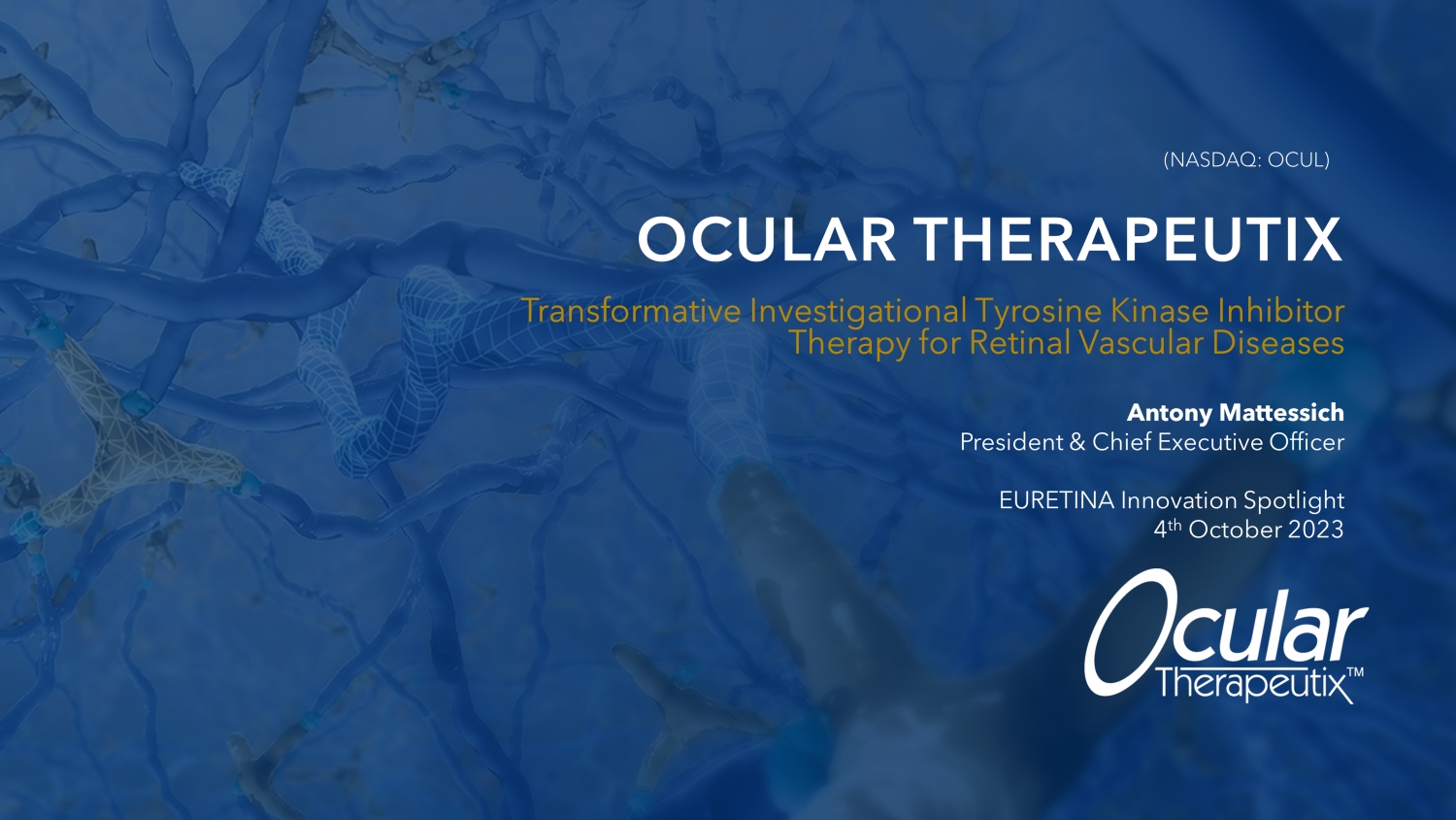 Transformative Investigational Tyrosine Kinase Inhibitor Therapy for Retinal Vascular Diseases OCULAR THERAPEUTIX (NASDAQ: OCUL) Antony Mattessich President & Chief Executive Officer EURETINA Innovation Spotlight 4 th October 2023