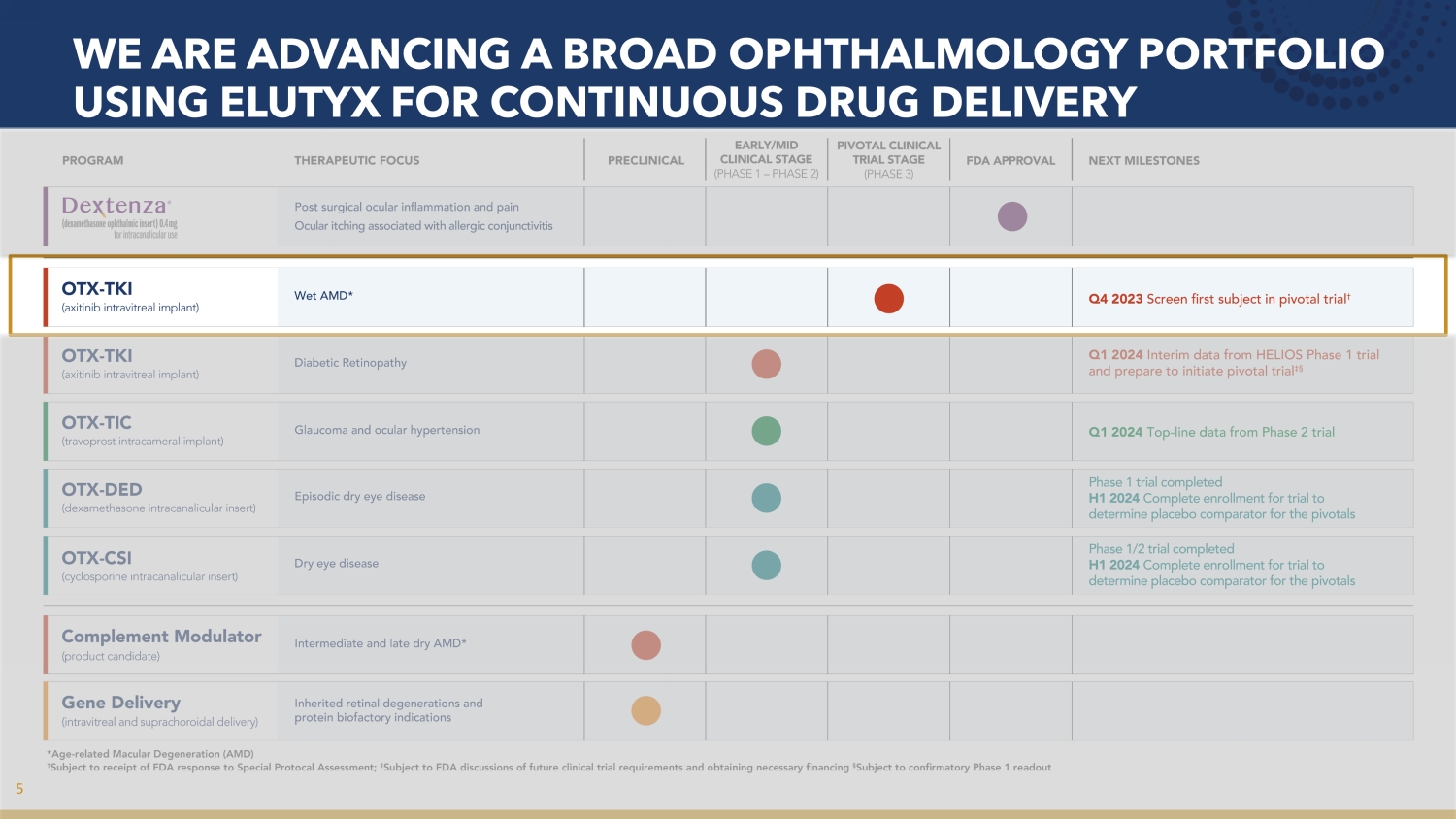 4 WE ARE ADVANCING A BROAD OPHTHALMOLOGY PORTFOLIO USING ELUTYX FOR CONTINUOUS DRUG DELIVERY