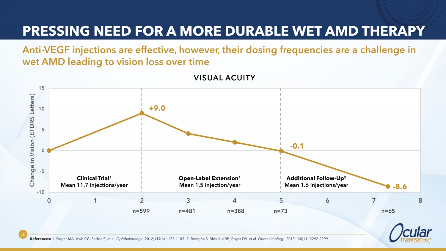 Prepare to initiate second pivotal wAMD trial* † H2 2024 15 UPCOMING WET AMD PROGRAM MILESTONES DEC 2023 Submit Special Protocol Assessment (SPA) IRB Approval Initiate contracting with study sites SEP 2023 • Agreement on protocol and analysis with FDA • Screen first subject* x x x *Subject to receipt of FDA response to Special Protocol Assessment; †Subject to obtaining necessary financing